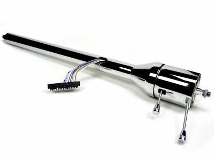 This retrofit column is designed to fit your Chevy Truck and does NOT require modification to your original vehicle to install. Unique locating slots and brackets allow for a perfect installation every time. Simply remove your old column, saving your original under dash mount and floor mount and using one of our installation kits, you can install your new column in place of the old. Using an adaptor, add an aftermarket wheel and the gripping surface of the new wheel will be in the same location as the original. Column comes standard with 8-position tilt, self-canceling turn signals, 4-way flashers, knobs & levers, 3 7/8" wiring plug, and a 3/4" 36 lower shaft.