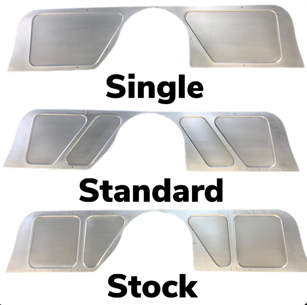 Handcrafted in house from 18 gauge steel. Welding is required for proper installation. It is recommended you cut out the original firewall for proper installation. Includes 2 firewall panels for both passenger and drivers side.
