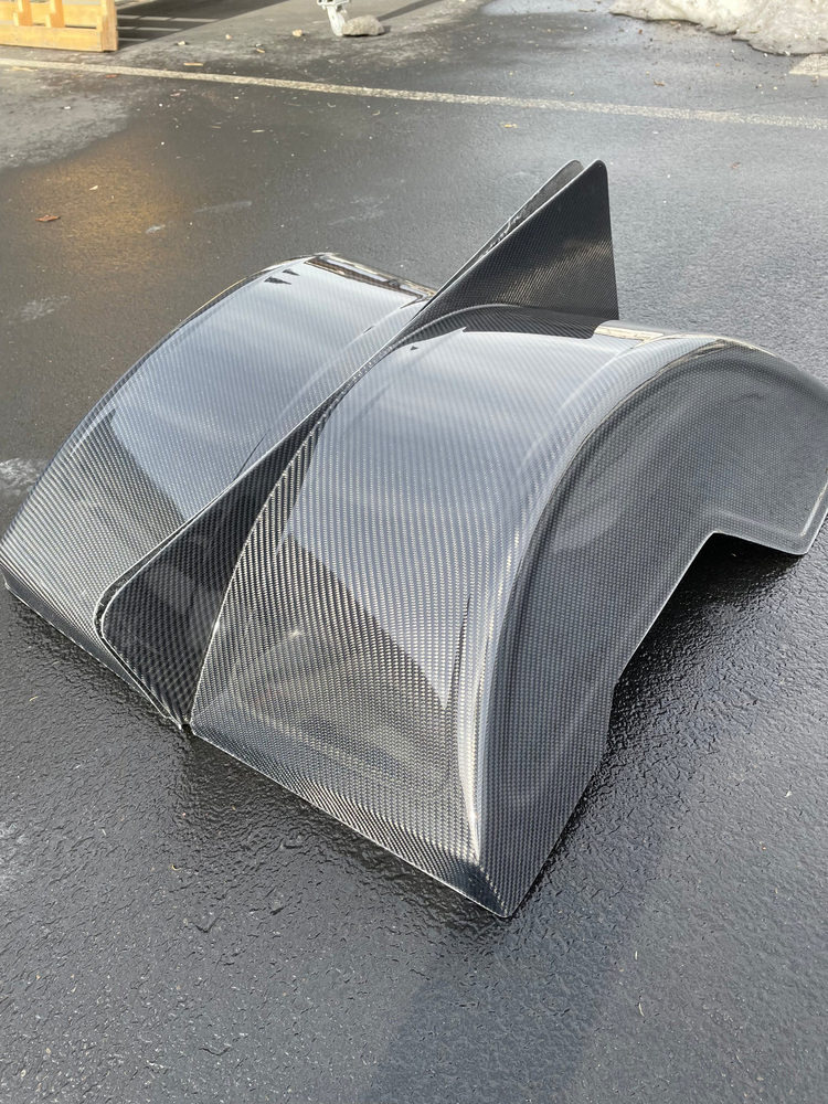 Fiberglass come in gloss black gelcoat and carbon fiber are available in either matte or gloss finish.