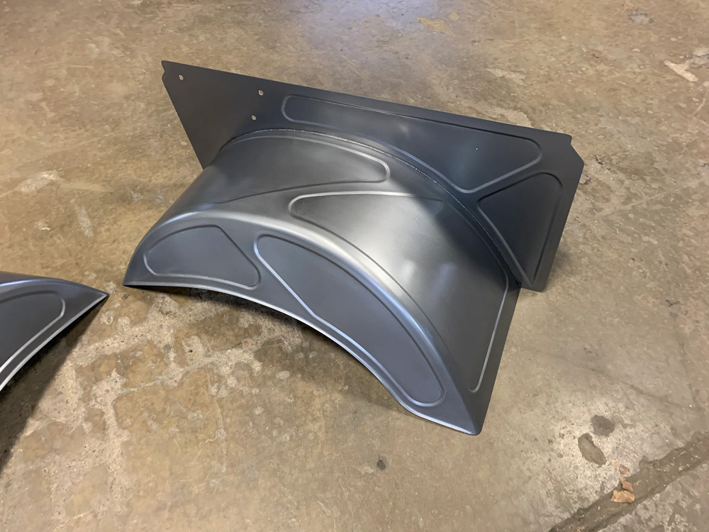 Hand crafted in house from 18 gauge steel offered in raw finish only. Included are 2 - inner fender assemblies, 2- core support mounting brackets and 1 - firewall mounting bracket.