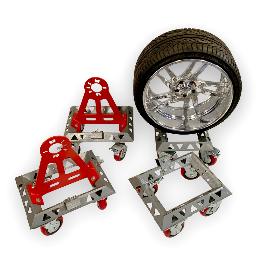 Each dolly is rated for 4000 lbs and features 6-inch premium casters, a universal 5-lug mounting pattern, all-steel welded construction, and a durable powder-coated finish built to last. Designed for maximum efficiency, the Auto Glide Dolly keeps your projects mobile, stable, and organized in any shop environment.