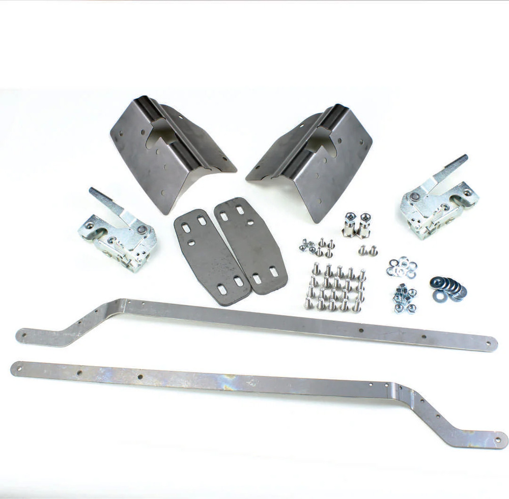 The Altman Easy Latch kit is a vehicle specific bolt-on, bear jaw rotary claw latch kit. This kit features contoured jam plates to match the features of your vehicles doors. These are in no way a universal application. Our bear jaw rotary claw latches are each designed to work with the exterior handles, interior handles, and the exterior door lock cylinders of the specified vehicles. Each piece of our bear jaw latches are zinc plated to fight corrosion. Our internal claws are case hardened and black oxide coated. Each kit comes with everything you need for two doors. Latch plates, vehicle specific bear jaw rotary claw latches, templates, hardware, detailed instructions, striker plates, and even stainless steel striker bolts. The Altman Easy Latch kit will have your doors opening and closing smoothly and safely. All of our kits are designed, manufactured, and assembled here in the USA.