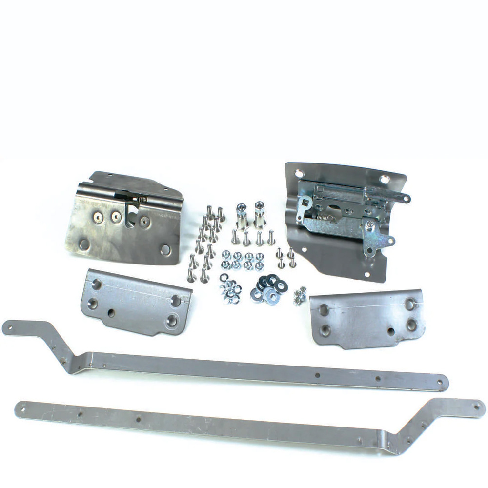 The Altman Easy Latch kit is a vehicle specific bolt-on, bear jaw rotary claw latch kit. This kit features contoured jam plates to match the features of your vehicles doors. These are in no way a universal application. Our bear jaw rotary claw latches are each designed to work with the exterior handles, interior handles, and the exterior door lock cylinders of the specified vehicles. Each piece of our bear jaw latches are zinc plated to fight corrosion. Our internal claws are case hardened and black oxide coated. Each kit comes with everything you need for two doors. Latch plates, vehicle specific bear jaw rotary claw latches, templates, hardware, detailed instructions, striker plates, and even stainless steel striker bolts. The Altman Easy Latch kit will have your doors opening and closing smoothly and safely. All of our kits are designed, manufactured, and assembled here in the USA.